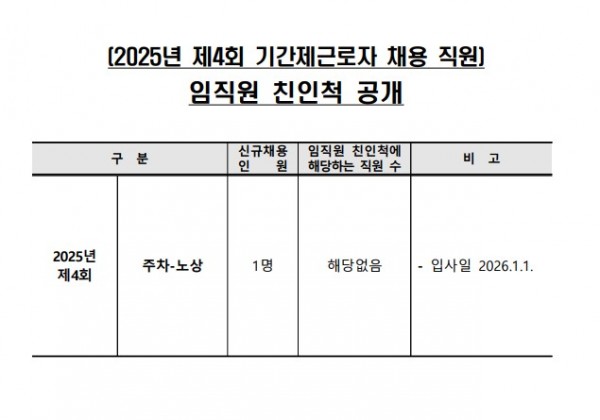 [2025년 제4회] 기간제근로자 채용 임직원 친인척 공개