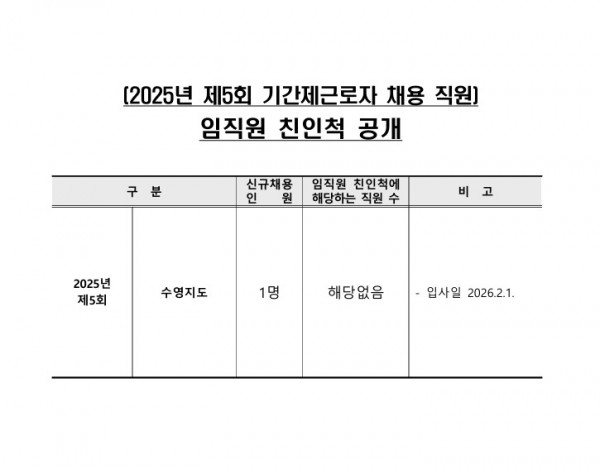 [2025년 제5회] 기간제근로자 채용 임직원 친인척 공개