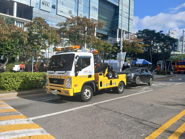 불법주정차 견인 지원·골든타임 확보로 현장 대응력 강화 <‘2025 재난대응 안전한국훈련’ 견인차량 합동훈련 현장(사진=금천구시설관리공단)>