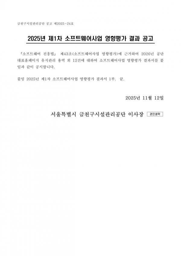 2025년 제1차 소프트웨어사업 영향평가 결과 공고